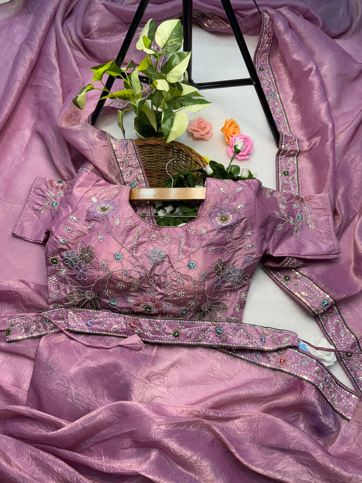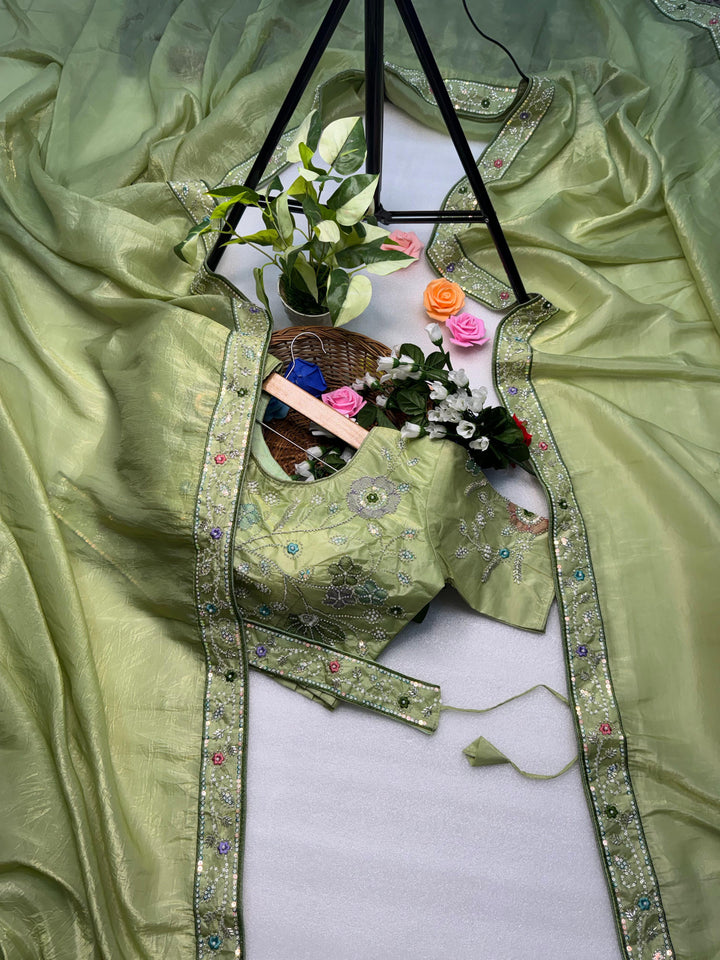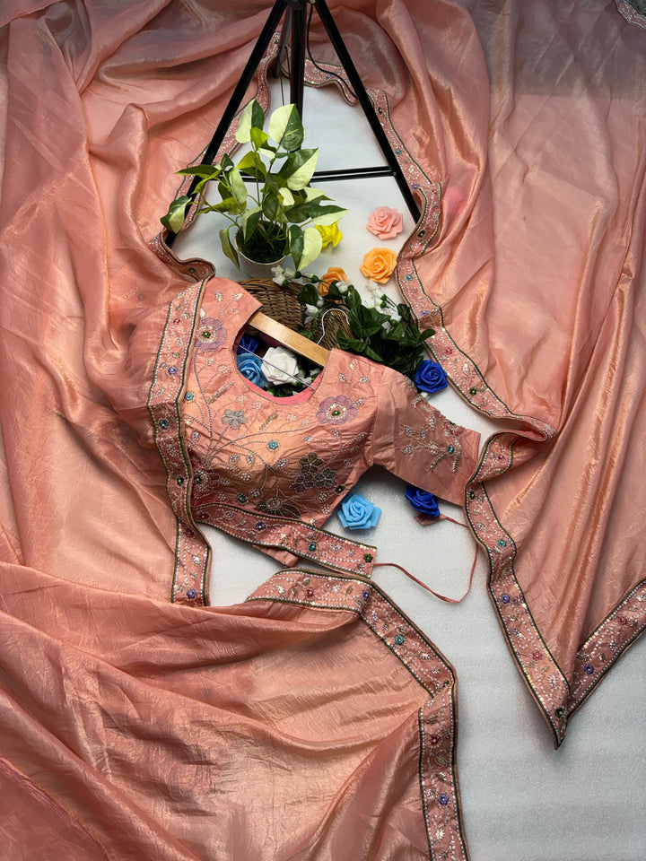 Product Description – Designer Embroidered Saree with Stitched Blouse
